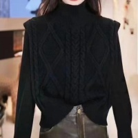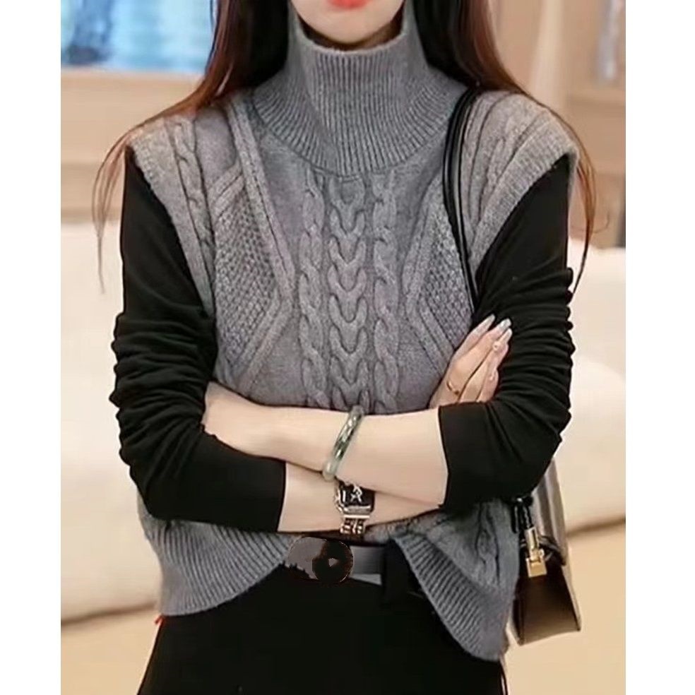 日式雙面可穿的款式 一面是高領麻花 另一面是連結的設計 一件衣服輕鬆穿出兩種風格